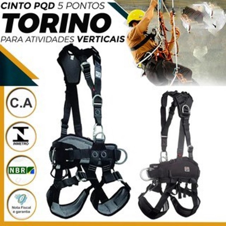 Cinturão tipo paraquedista, o Torino prima pelo conforto e pela tecnologia oferecida ao usuário. Regulagens estratégicas aliadas a conceitos inovadores de ergonomia fazem deste cinturão um equipamento com amplo leque de atendimento nas áreas de trabalho em altura, resgate e espaço confinado.