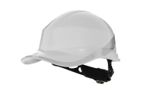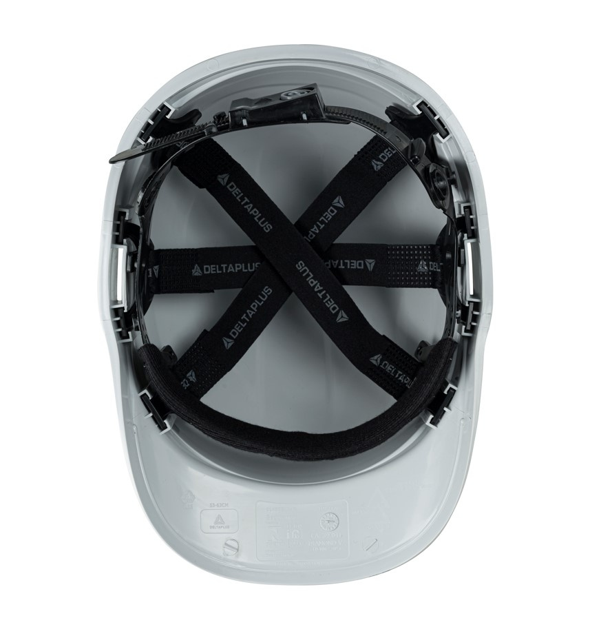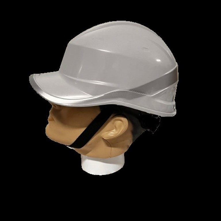 Capacete em ABS, classe A e B, aba frontal inovadora no formato de boné de baseball. Suspensão em PA, PEBD, PEAD: 3 fitas com 8 pontos de fixação e botão para fácil ajuste. Tira de absorção de suor em espuma. Isolamento elétrico de até 30.000 V.