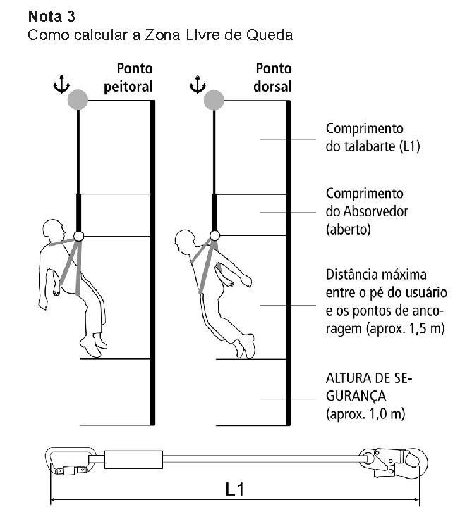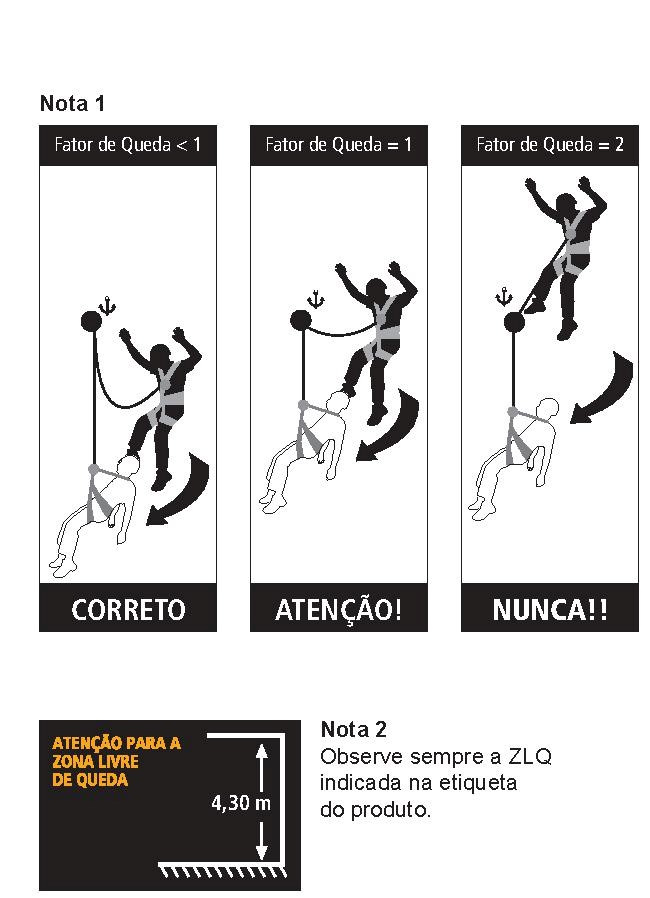 IMPORTANTE: seja qual for o modelo de talabarte, a altura do ponto de ancoragem com referência ao solo deverá ser como mínimo igual a Zona Livre de Queda (ZLQ) do talabarte;